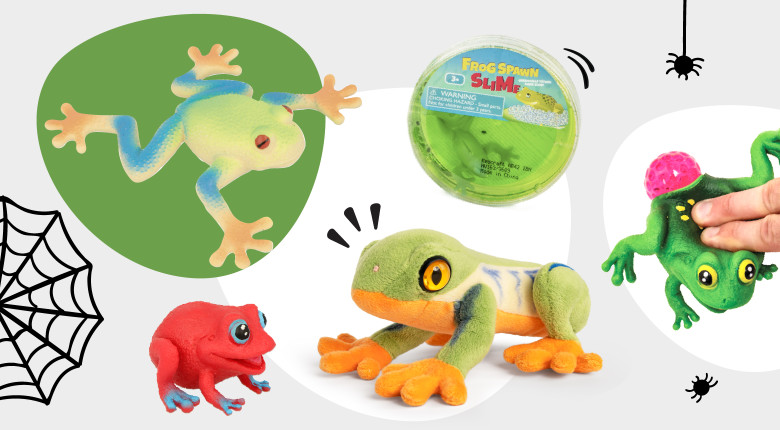 With wet and slimy skin, frogs and toads bring the skin-crawling horrors of dark and cold places to mind. To name but a few of our slimy delights; frog-spawn slime, squeezy and stretchy frogs, plus our showstopping Living Nature™ Red-eyed tree frog.